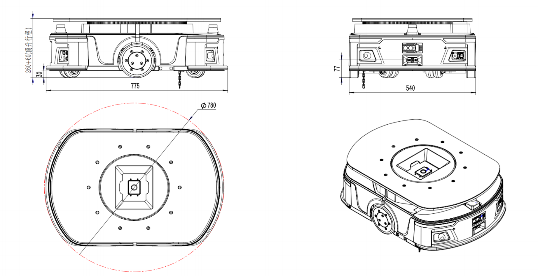 | Basic parameters | Overall dimensions | 775L*540W*260H mm | ||