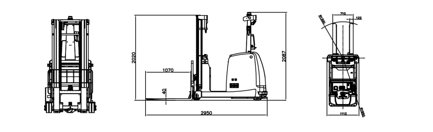 | Aisle Width for 90° Pallet Pickup | 3600 mm (pallet: 1200*1200) | |